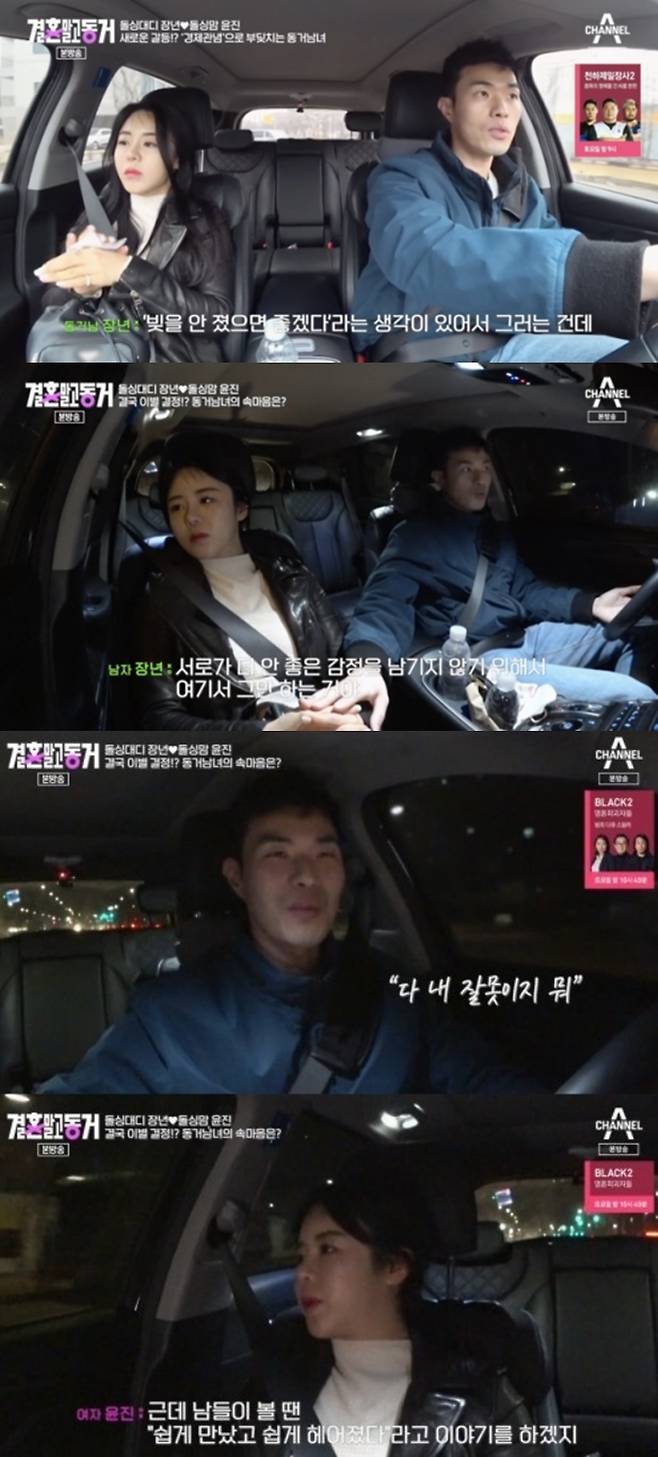 3월 31일 방송된 채널A ‘결혼 말고 동거’에서는 김장년과 정윤진이 계속 이어진 갈등 끝에 이별하는 모습이 그려졌다.
