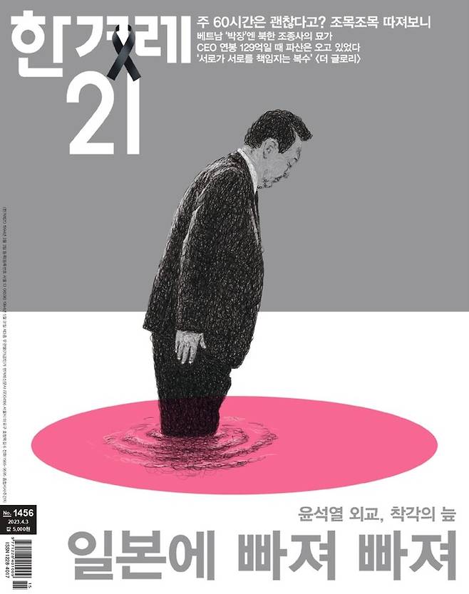 <한겨레21> 제1456호 표지이야기 ‘X맨 외교’는 윤석열 정부가 졸속적이고 막무가내로 밀어붙이는 한-일 관계 ‘개선’과 한·미·일 삼각동맹 추진의 배경과 평가를 짚었습니다. 겉표지에 ‘윤석열 외교, 착각의 늪’이라는 부제가 눈에 밟힙니다. 대통령실은 “이번 정상회담이 한-일 관계의 판을 바꿨다”며 “커다란 성공”이라고 자평했습니다. 박진 외교부 장관은 “물컵에 물이 절반 이상 찼다”며 “일본의 성의 있는 호응을 기대한다”고 거들었습니다.