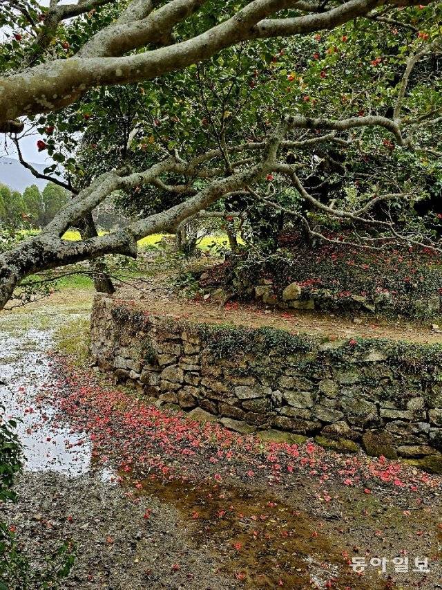 눈을 들어보니 등산로뿐만 아니라 온 산이 동백꽃 세상이 아닌가. 원시림과 덤불, 바위를 헤치고 겨우 마을로 내려왔다. 야트막한 동네 산이라 꽃에 취해 한 번쯤 길을 잃어도 좋은 봄날의 시간이었다.