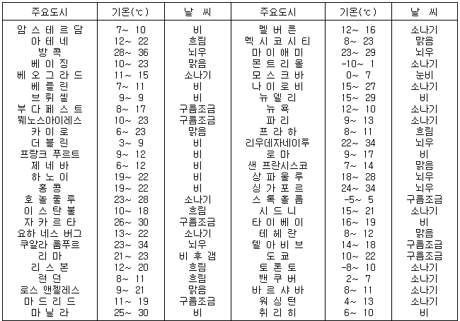 세계의 날씨(4월1일)
