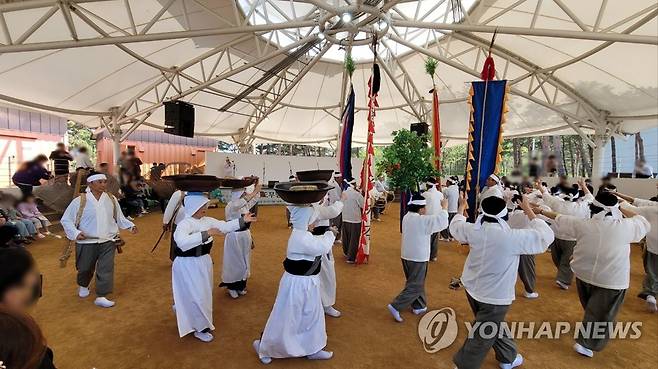 (속초=연합뉴스) 이종건 기자 = 1일 속초시립박물관 야외공연장에서 열린 무형문화재 공개행사에서 속초 도문농요가 공연되고 있다.