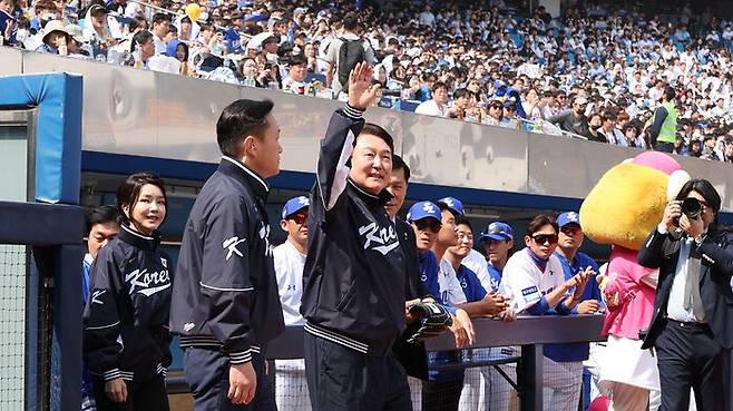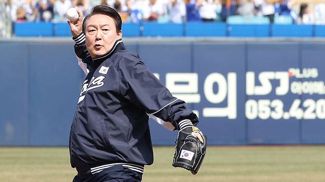 윤석열 대통령이 2023년 한국프로야구 KBO리그 정규시즌 개막을 알리는 공을 던졌습니다.