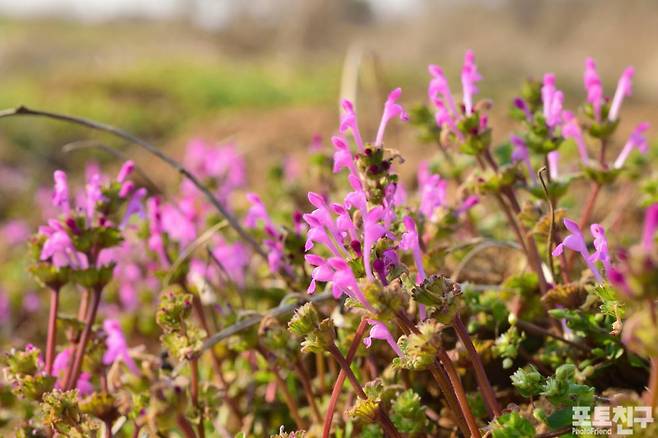 고향 논두렁에 광대나물이 화려하다.