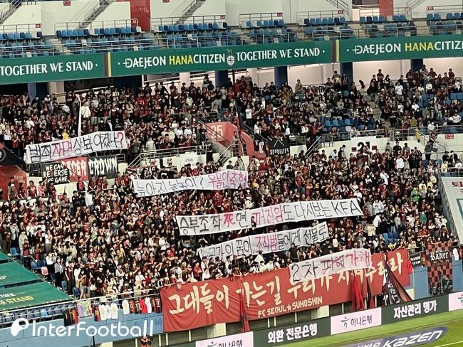 그럼에도 팬들의 분노는 쉽사리 가라앉지 않았다. 3월 A매치 휴식기를 마치고 첫 경기를 갖는 대전과 서울의 팬들은 걸개를 통해 KFA 측에 비판의 화살을 보냈다.