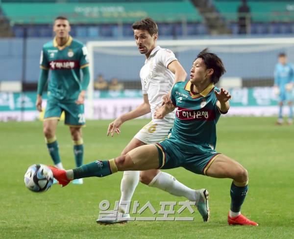 대전 배준호가 서울에 앞서 공을 따내고있다.
