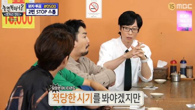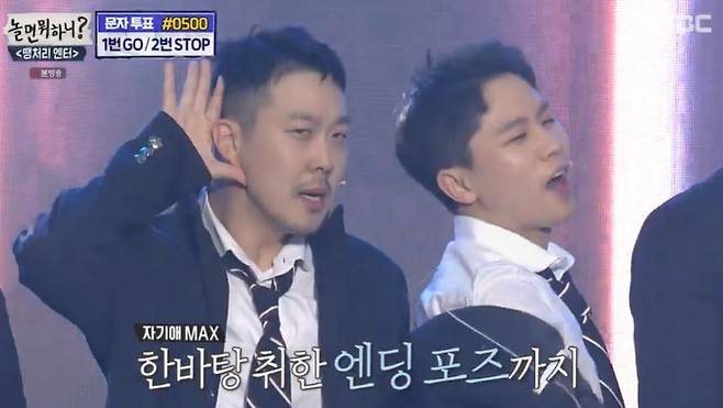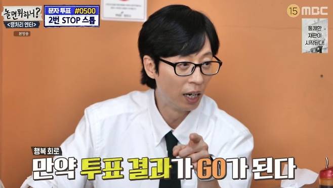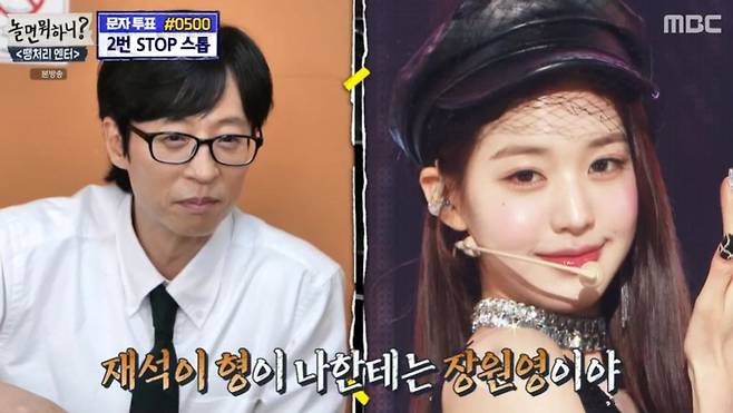 이에 유재석은 “왜 갑자기 장원영 얘기를 하나”며 수줍어했다. 그러면서도 “우리끼리 행복회로를 돌려본다면 투표 결과가 ‘고’가 될 수도 있지 않나. 당장은 아니더라도 적당한 시기에 우리가 노래를 부를 수고 있다”고 행복하게 덧붙였다.