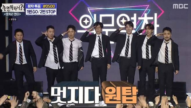 이어 스튜디오로 간 유재석과 원탑은 카메라 앞에서 또 한 번 절도 넘치는 칼 군무를 선보이며 3년의 기다림과 노력의 결실을 증명했다.