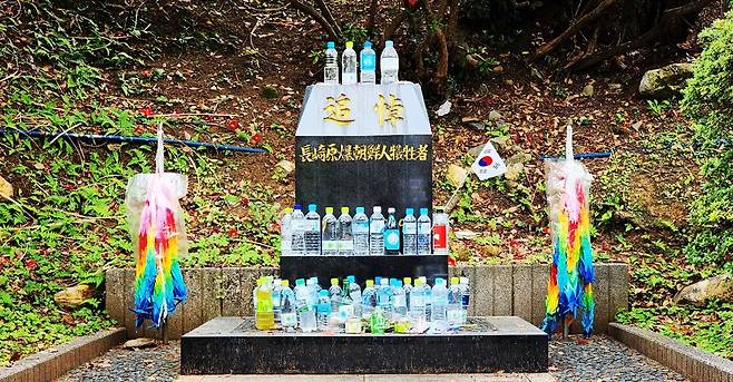 원폭 폭심지를 중심으로 조성된 평화공원에는 '나가사키 원폭 조선인 희생자 추도비'가 자리를 지키고 있다. 설명문에 따르면 이 추도비는 "이름없는 일본 사람들이 얼마간의 돈을 모아" "지난 시기 일본이 조선을 무력으로 위협하여 식민지로 만들고 그 민족을 강제로 끌고 와 학대혹사하며, 강제노도 끝에 비참하게도 원폭에 맞아 죽게 한 전쟁책임을 그들에게 사죄함과 동시에 이 세상에서 핵무기의 완전철폐와 조선의 자주적 평화통일을 염원"하며 세운 것이라고 한다.