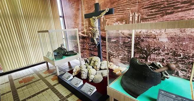 | ▲ 원자폭탄에 피폭되어 망가진 우라카미 천주당의 성상들. 가톨릭 성지, 원폭 피폭지로서의 나가사키의 정체성이 읽힌다. |