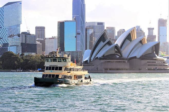 | ▲ 시드니 오페라 하우스 앞을 페리가 통과하고 있다. 시드니의 페리는 관광수단을 넘어 지역 주민들의 소중한 교통수단이 된 지 오래다. |