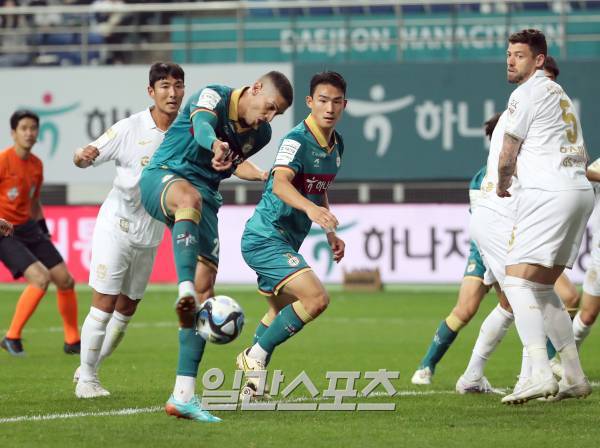 대전 티아고가 서울 문전에서 슈팅하고있다.