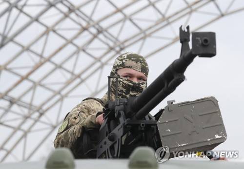 epa10553621 A Ukrainian serviceman handles a machine gun during the handing over of ten pick-up trucks to mobile anti-drone units near the largest Ukrainian cargo aircraft Antonov An-225 Mriya 'Dream' that was destroyed during the Russian attacks on Hostomel Airfield not far from Kyiv, Ukraine, 01 April 2023 amid the Russian invasion. Mobile anti-drone units have the task to track and destroy enemy kamikaze drones and other low-flying aerial targets. Russian troops on 24 February 2022, entered Ukrainian territory, starting a conflict that has provoked destruction and a humanitarian crisis. EPA/SERGEY DOLZHENKO