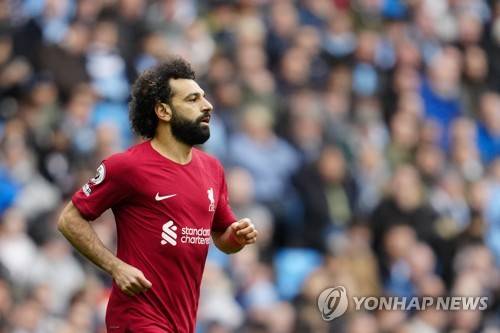 Liverpool's Mohamed Salah stands on the pitch during the English Premier League soccer match between Manchester City and Liverpool at Etihad stadium in Manchester, England, Saturday, April 1, 2023. (AP Photo/Jon Super)