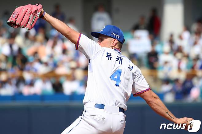 (대구=뉴스1) 공정식 기자 = 1일 오후 대구 삼성라이온즈파크에서 열린 프로야구 '신한은행 SOL 2023 KBO리그' NC 다이노스와 삼성 라이온즈의 시즌 개막전에서 삼성 선발 뷰캐넌이 역투하고 있다. 2023.4.1/뉴스1