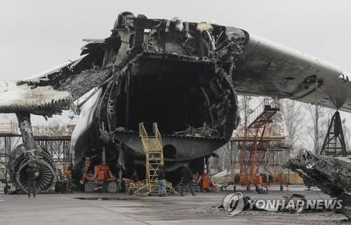 epa10553658 The debris of the cargo aircraft Antonov An-225 Mriya 'Dream' at the Hostomel Airfield not far from Kyiv, Ukraine, 01 April 2023 amid the Russian invasion. The world's largest plane Antonov An-225 Mriya 'Dream' was destroyed in its hangar on the first days of the Russian invasion. Hostomel, as well as other towns and villages in the northern part of the Kyiv region, became battlefields, heavily shelled, causing death and damage when Russian troops tried to reach the Ukrainian capital of Kyiv in February and March 2022. Russian troops on 24 February entered Ukrainian territory, starting the conflict that has provoked destruction and a humanitarian crisis. EPA/SERGEY DOLZHENKO