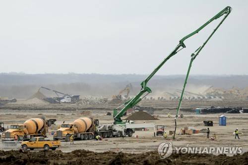 Workers prepare the site of a $4 billion Panasonic EV battery plant Thursday, March 30, 2023, near DeSoto, Kan. Economic incentives offered by Kansas state and local governments beat out those offered by neighboring Oklahoma to help lure the project to the site on land formerly occupied by an Army ammunition plant. (AP Photo/Charlie Riedel)
