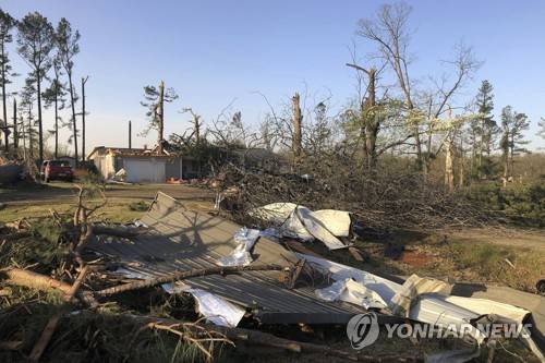 Debris covers the ground around a home that was damaged from severe weather in Wynne, Ark., on Saturday, April 1, 2023. Unrelenting tornadoes that tore through parts of the South and Midwest that shredded homes and shopping centers. (AP Photo/Adrian Sainz)
