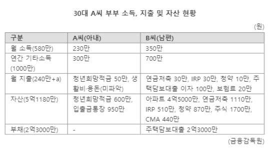 금감원 관계자는 “아내의 소득이 줄거나 일정기간 중단될 수 있어 이때 가계 현금흐름에 문제가 생기지 않게 하기 위한 준비자금이 필요하다”며 “주택 확장 계획도 있는 만큼 부채 상환기간을 앞당기거나 추가 유동성자금을 마련해야 할 것”이라고 지적했다.