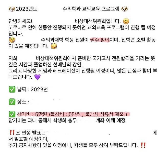 코로나 거리두기 해제 이후 대학가에서 대면 행사들이 속속 재개되고 있습니다. 그중에서도 대학 생활의 꽃이라 불리는 'MT'를 빼놓을 수 없겠죠. 새내기 입장에서는 캠퍼스에서 함께 공부할 친구와 선배들을 한자리에서 다 같이 만나는 자리이니만큼 기대도 크고 설레기도 합니다. 하지만, 누군가는 굳이 가고 싶지 않거나 갈 수 없는 사정이 있을 수 있습니다. 그런데 최근 서울의 한 사립대학교 건축학부 학생회가 MT 행사를 안내하면서 불참할 경우 장학금 순위 산정 때 불이익 갈 수 있다는 문구를 써놓으면서 학내 논란을 촉발했습니다.