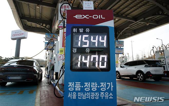 [서울=뉴시스] 고승민 기자 = 오피넷에 따르면 지난달 다섯째 주 전국 주유소 휘발유 평균 판매가격이 넷째 주보다 2.8원 하락한 것으로 알려진 2일 서울의 한 주유소에서 운전자들이 주유를 하고 있다. 한편 휘발유 판매가는 2주 연속 떨어졌으며 경유도 19주째 내림세를 보이고 있다. 2023.04.02. kkssmm99@newsis.com