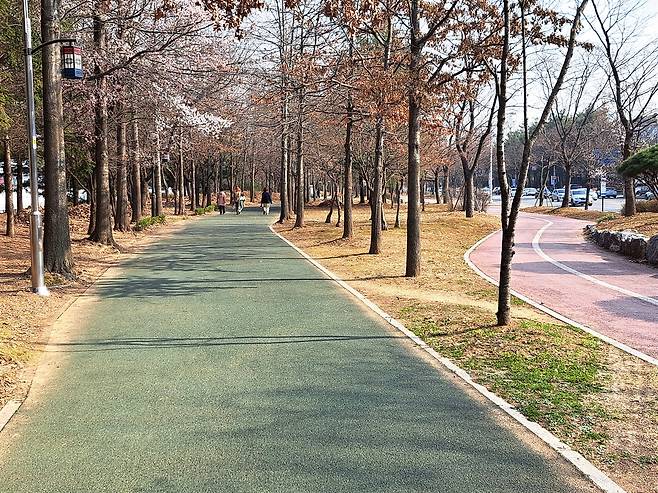 | ▲ 경의선 길 옛 논길이었을 곳이 철길과 도로 사이 산책로로 바뀌었다. |