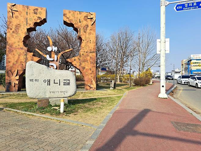 | ▲ 애니골 입구 풍동 애니골 입구에 선 조형물. |