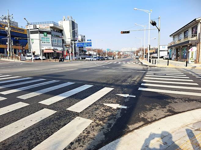 | ▲ 새로 난 도로 애니골을 반으로 가르며 새로 난 도로. 잘린 YMCA가 좌측에 보인다. |