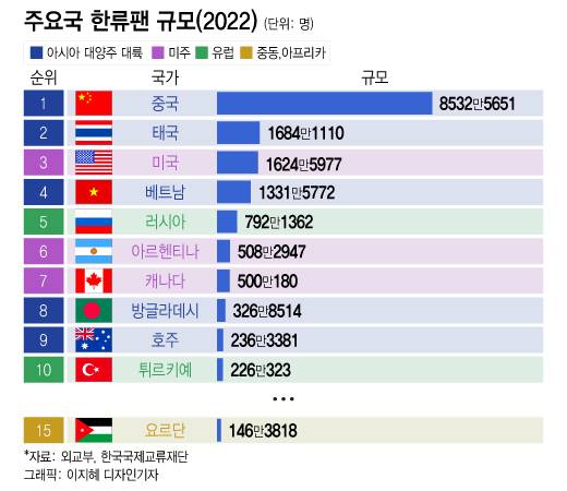 [더차트]세계 곳곳에 퍼져있는 한류…K-팬덤 가장 많은 나라는?
