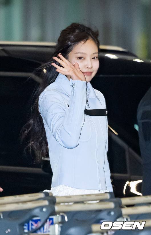 블랙핑크 제니가 출국길에 손인사를 하고 있다. 2023.04.02 / rumi@osen.co.kr