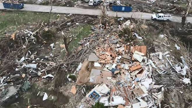 현지시간 지난 31일 테네시와 아칸소, 일리노이주 등 미국 중남부 8개 주를 휩쓴 토네이도로 지금까지 집과 건물 수천 채가 파손됐고, 40만 가구 넘게 정전이 된 것으로 집계됐습니다.