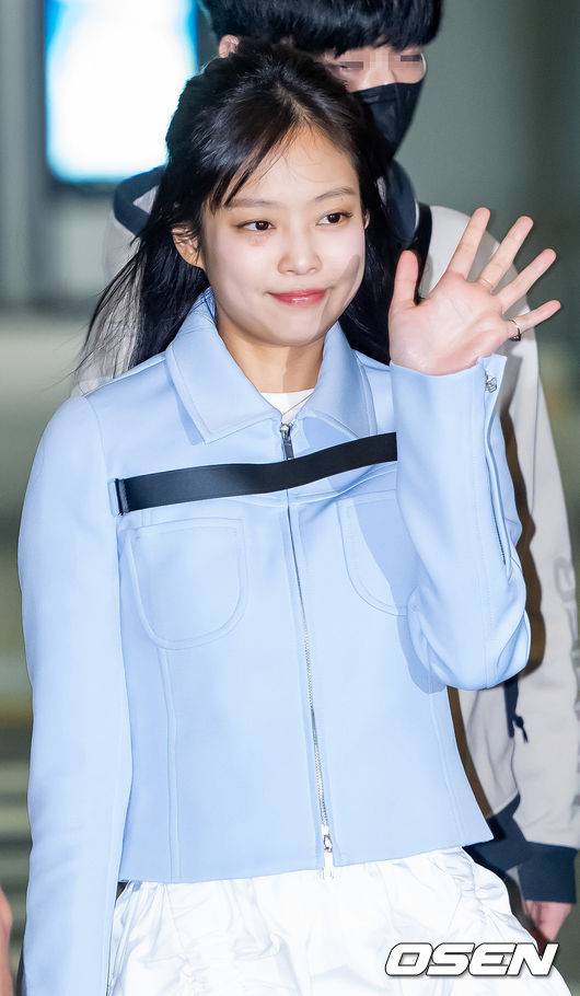 블랙핑크 제니가 출국장으로 향하며 손 인사를 하고 있다. 2023.04.02 / rumi@osen.co.kr