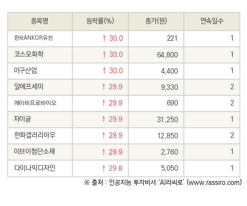 [fnRASSI]오늘의 상한가, 한국ANKOR유전 30.0% ↑