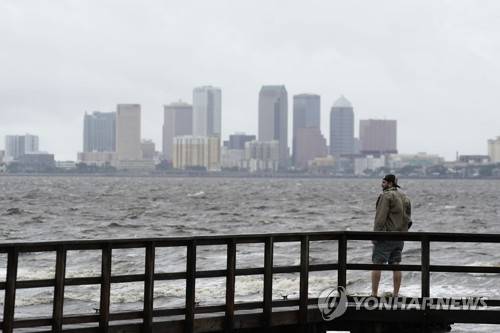 FILE - Ash Dugney views Tampa Bay on the Ballast Point Pier ahead of Hurricane Ian, Sept. 28, 2022, in Tampa, Fla. Hurricane Ian briefly reached Category 5 status with 161 mph (259 kph) winds over open water before striking southwestern Florida as a slightly weaker 150 mph (241 kph) storm last September, eventually causing over $112 billion in damage in the U.S. and more than 150 deaths directly or indirectly, the National Oceanic and Atmospheric Administration reported Monday, April 3, 2023. (AP Photo/Chris O'Meara, file) SEPT. 28, 2022 FILE PHOTO