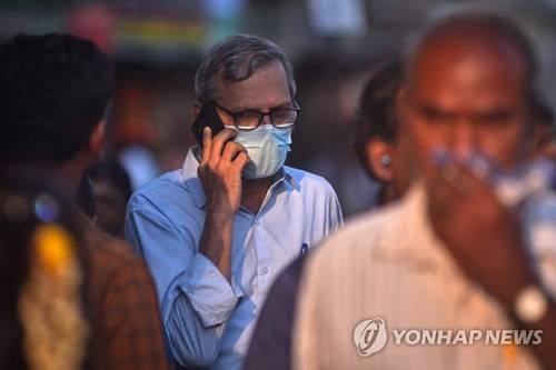 epa10557035 A man speaks on a mobile phone as he wears a face mask amidst the surge in COVID-19 cases, in Chennai, India, 03 April 2023. According to the Ministry of Health and Family Welfare's data on 02 April 2023, India registered a single day spike of 3,824 COVID-19 cases, the highest rise in the last six months. The Tamil Nadu government has made wearing face masks mandatory at all government hospitals across the state following the surge in COVID-19 cases as a precautionary measure. EPA/IDREES MOHAMMED