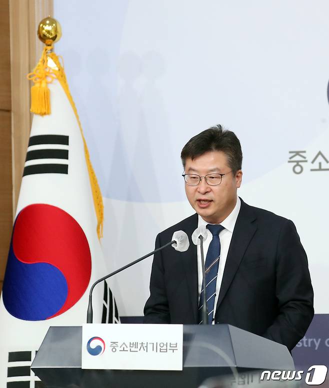 (서울=뉴스1) 김명섭 기자 = 김우순 중소벤처기업부 기술혁신정책관이 4일 오전 서울 종로구 정부서울청사 별관에서 원전 중소기업 중장기 경쟁력 강화방안 발표를 하고 있다. 2023.4.4/뉴스1