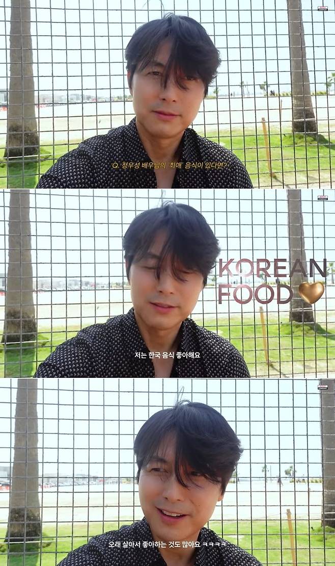 해변가를 배경으로 카메라를 든 정우성은 "최애 음식이 있냐"는 제작진의 질문에 "한국 음식이다. 그런데 음식은 안 가린다"라고 답했다.
