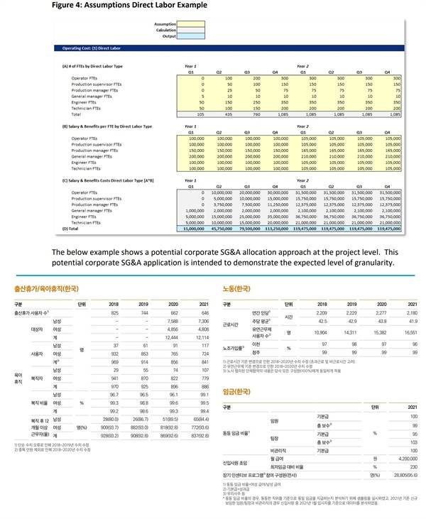 | ▲ 위 표는 미국 상무부가 반도체 보조금 지급을 이유로 요구하는 내용 중 일부이고, 아래 표는 SK하이닉스 홈페이지에 있는 인건비 지출 내역입니다. 많은 항목이 이처럼 공개해도 큰 무리가 없는 내용입니다. |