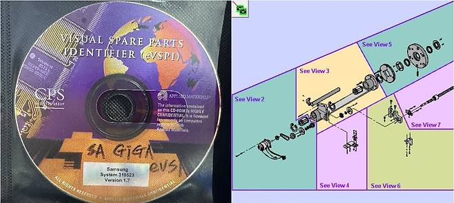 | ▲ 어플라이드 머트리얼사가 삼성전자에 반도체 장비를 납품하면서 함께 제공한 VSPI(Visual Spare Part Identification) CD. 이 안에는 해당 장비의 사양 뿐만 아니라 장비를 구성하고 있는 부품까지 모두 포함되어 있습니다. |