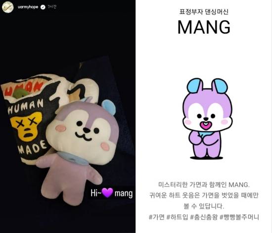 방탄소년단 제이홉이 디자인한 캐릭터 '망'의 새로운 모습이 공개됐다.