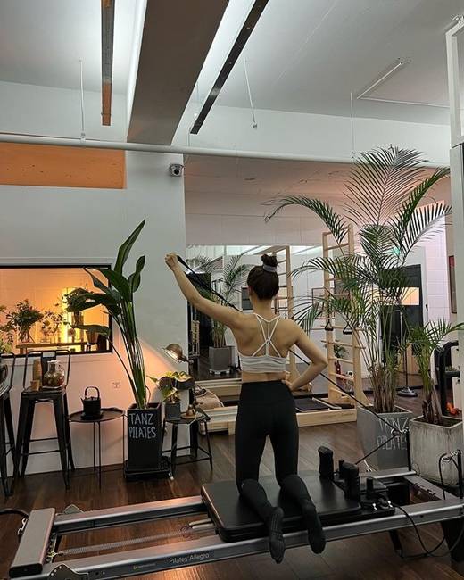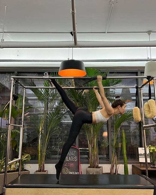 필라테스 운동 중인 박소담의 모습이다. 지난해 4월, 12월 그리고 1년 뒤인 올해 4월까지 시간 순서로 사진을 정렬한 박소담이다. 똑같은 운동기구 위에서 필라테스 수업을 받고 있는 모습을 기록한 것인데, 한눈에 봐도 1년 사이에 유연성이 한층 높아진 것을 알 수 있다.