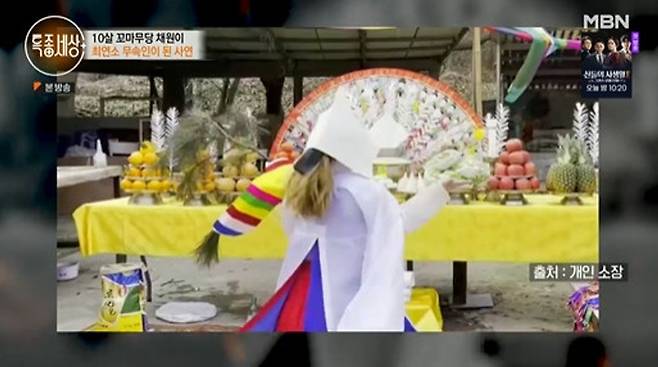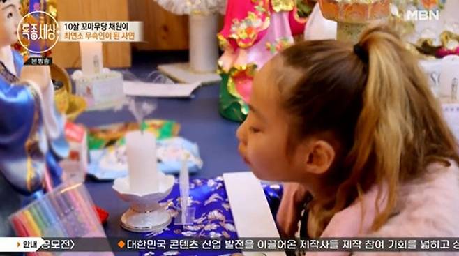 6일 MBN '특종세상'에선 무속인 아버지를 이어 신내림을 받고 9살에 최연소 무속인이 된 채원이의 사연이 전파를 탔다.