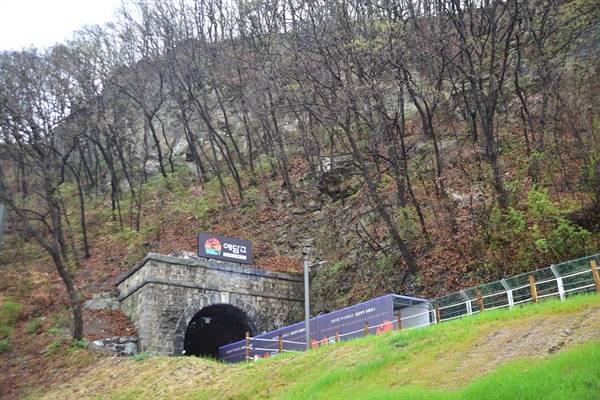 | ▲ 유물 관리 수장고 ‘예담고’로 재탄생한 1913년에 만들어진 옛 사진포 터널(왼쪽)과 1977년에 만들어져 지금도 기차가 다니고 있는 사진포 터널(오른쪽). |