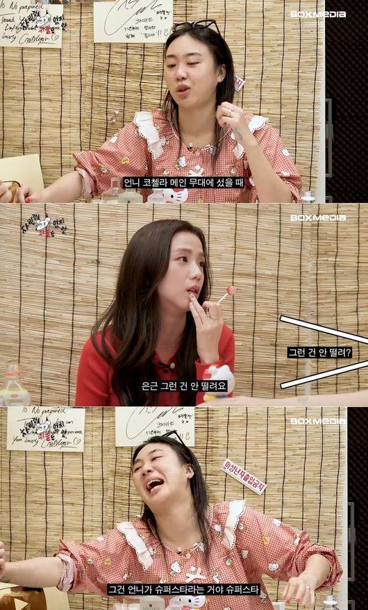 블랙핑크라는 글로벌 걸그룹으로써 지수의 고민은 없을지 질문도 이어졌다. 지수는 블랙핑크가 코첼라 메인 헤드라이너로 선정된 것에 대해 “은근 그런 건 안 떨린다”라고 담담하게 말했다. 이에 이영지는 “그게 언니가 슈퍼스타라는 거다”라고 말했다. 오히려 지수는 이영지와 키티 해적 게임을 하며 “이게 더 떨린다”라고 말해 웃음을 자아냈다.