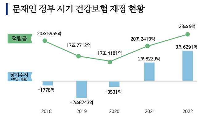 실제 건강보험공단은 지난달 역대급 당기수지 실적을 공개하면서 "지출증가 폭보다 수입증가 폭이 커 재정수지가 개선됐다"면서 "건강보험은 2년 연속 당기수지 흑자 상황이나, 글로벌 경기침체, 저출산·고령화로 인한 생산인구 감소, 초고령사회 도달(’25년), 의료이용 회복 등으로 향후 재정 불확실성은 점증할 것으로 예상된다"고 밝히기도 했다.