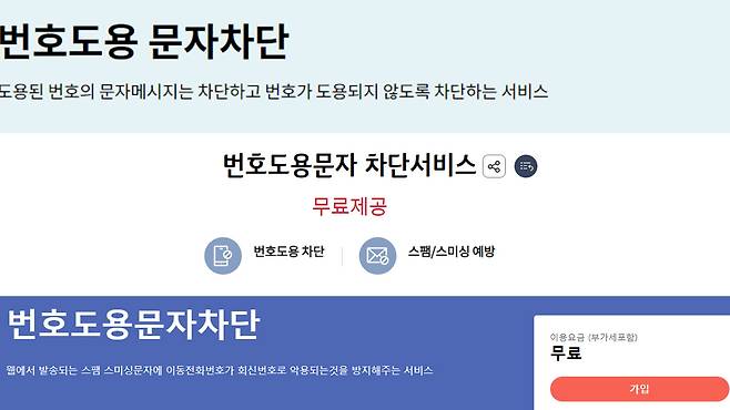 ■ "번호 도용 문자 차단, 무료입니다"