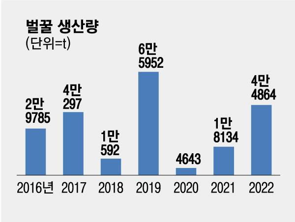 작년 벌꿀 생산량은 오히려 큰폭 늘어나