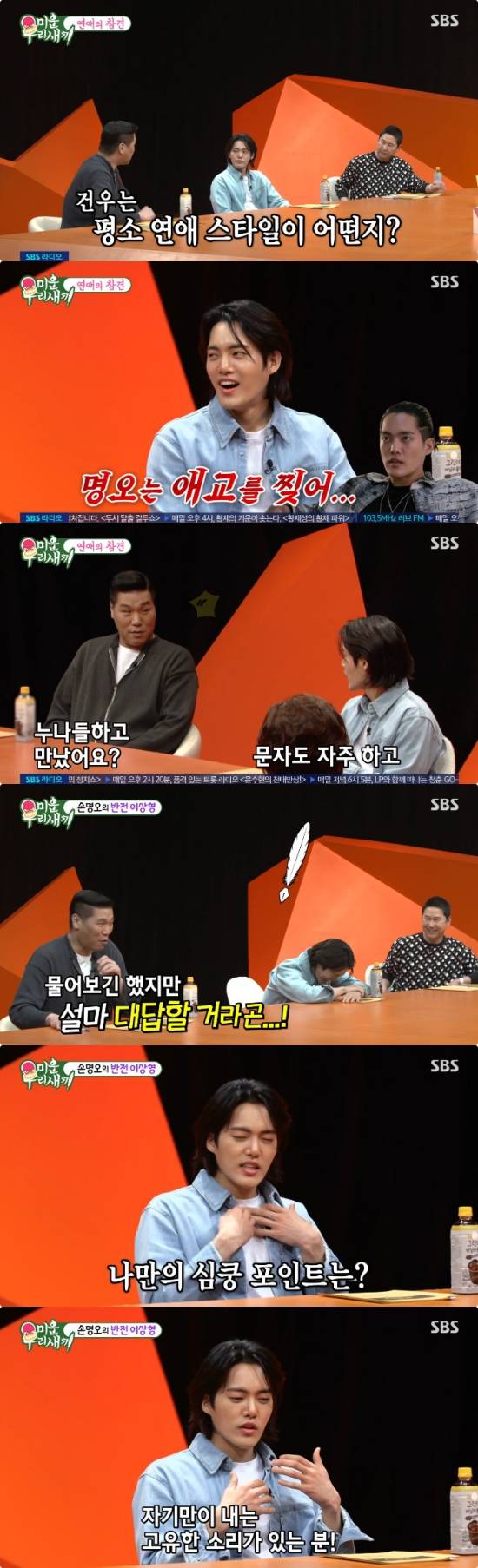 또 서장훈은 연애 스타일에 대해 "문자 보낼 때는 사실 종국이는 약간 상남자고 종민이는 귀여운 느낌이다. 건우 씨는 둘 중에 어떤 스타일이냐"라며 질문을 던졌다.