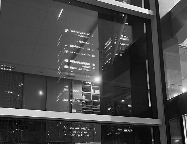 그렇게 대부분의 사람이 퇴근하고 날이 어둑해질 무렵이면 근처 편의점에서 저녁밥을 먹는다. 식사를 마친 후에는 최소한의 출입구만 열어두고 건물 정문과 후문, 그리고 지하로 통하는 모든 문을 잠그고 출입 금지 표지를 세운다. 로비와 통로에 있는 대부분의 전등을 끄고 내 자리에 돌아와 휑한 로비 구석에 놓인 의자에 잠시 앉는다.