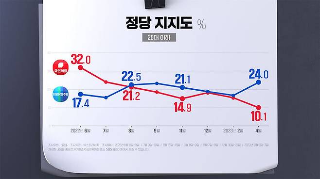 지난해 8월 20대 이하에서 민주당 지지도가 더 높아진 이후, 이번 조사에서 가장 큰 격차를 보였습니다.