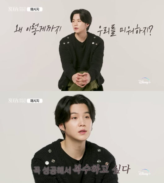 이후 슈가는 “멤버들끼리 ‘우리는 지옥에서 살아 돌아온 거다’라는 말을 했다”며 “왜 우리를 이렇게까지 미워하나 싶을 정도로 사방팔방에서 수많은 공격을 받았다”고 담담하게 말해 안타까움을 자아냈다.